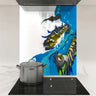 Bring the colours of nature into your kitchen with this DIY Glass Splashback, inspired by the imaginative artwork of Ramona Patterson. Bold strokes of ocean blue, earthy greens, and metallic accents flow across a bright backdrop, creating a striking, modern centerpiece.