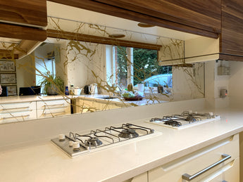 ®CreoGlass splashbacks are made from low-iron toughened glass, ensuring safety and resilience. Ordinary mirrors cannot handle stove heat or precise cut-outs, but our designs prevent cracking while maintaining flawless aesthetics.