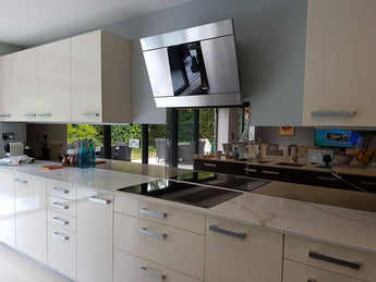Remember! Only Toughened Mirrors are suitable behind the hob as they are heat-resistant. An ordinary mirror, although cheaper, is not a wise investment and will crack due to the heat!