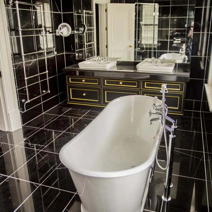 Our toughened glass is non-porous, easy to clean and resistant to mould, mildew, and stains. It also reflects light, making small spaces feel open and bright.