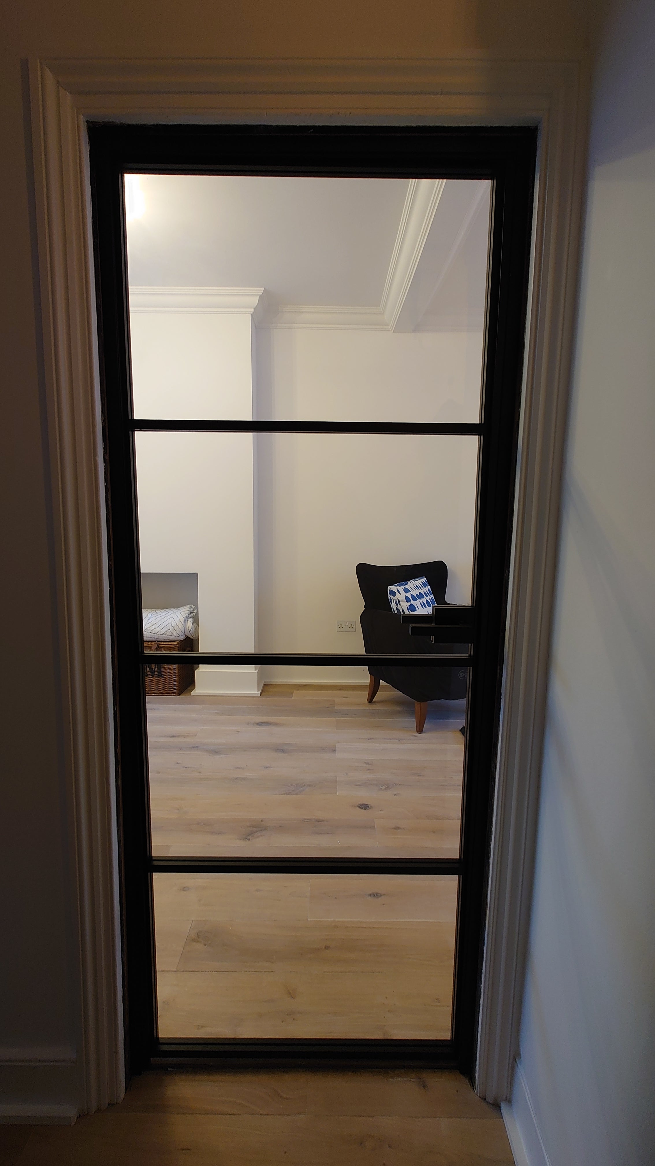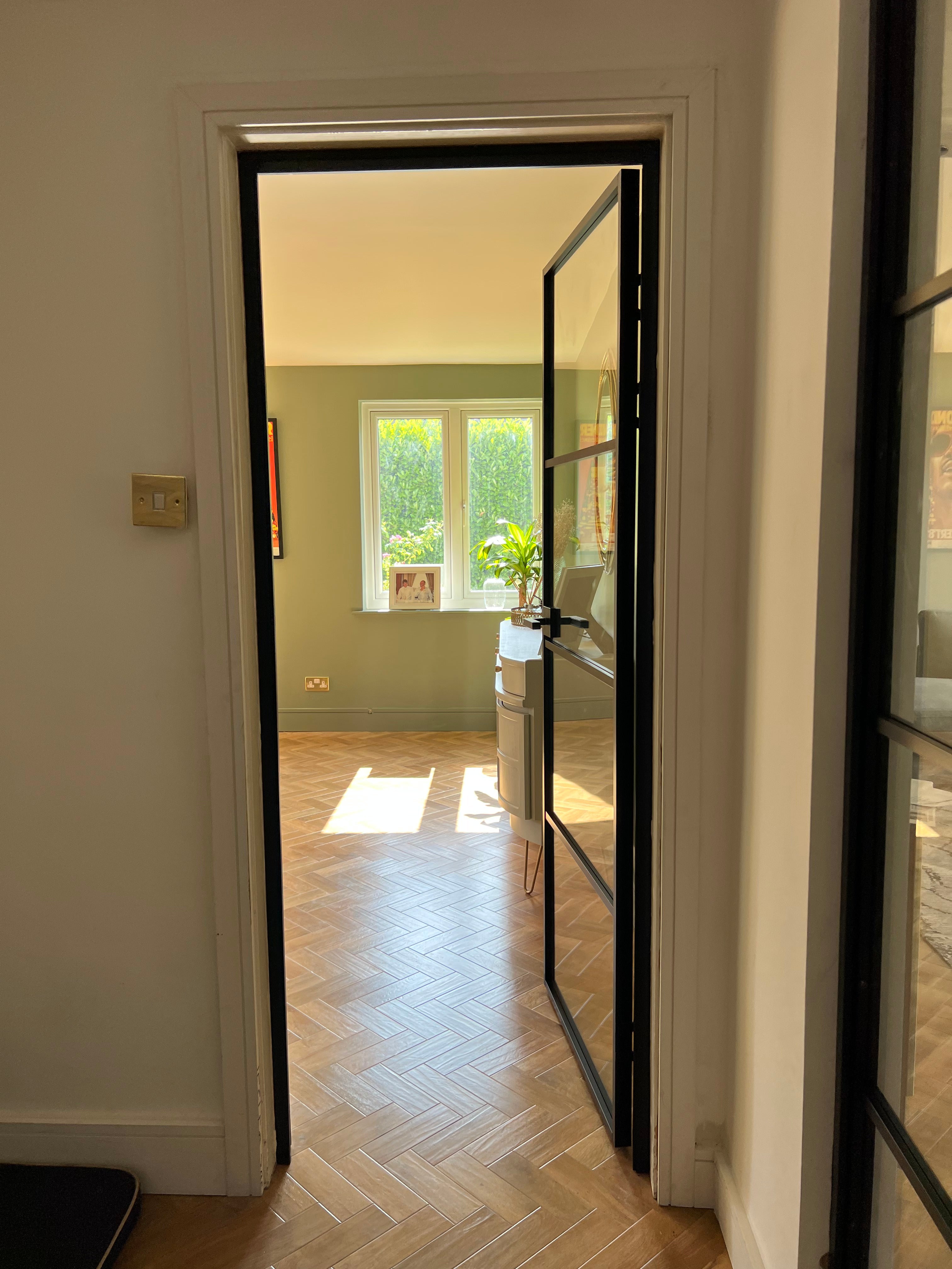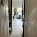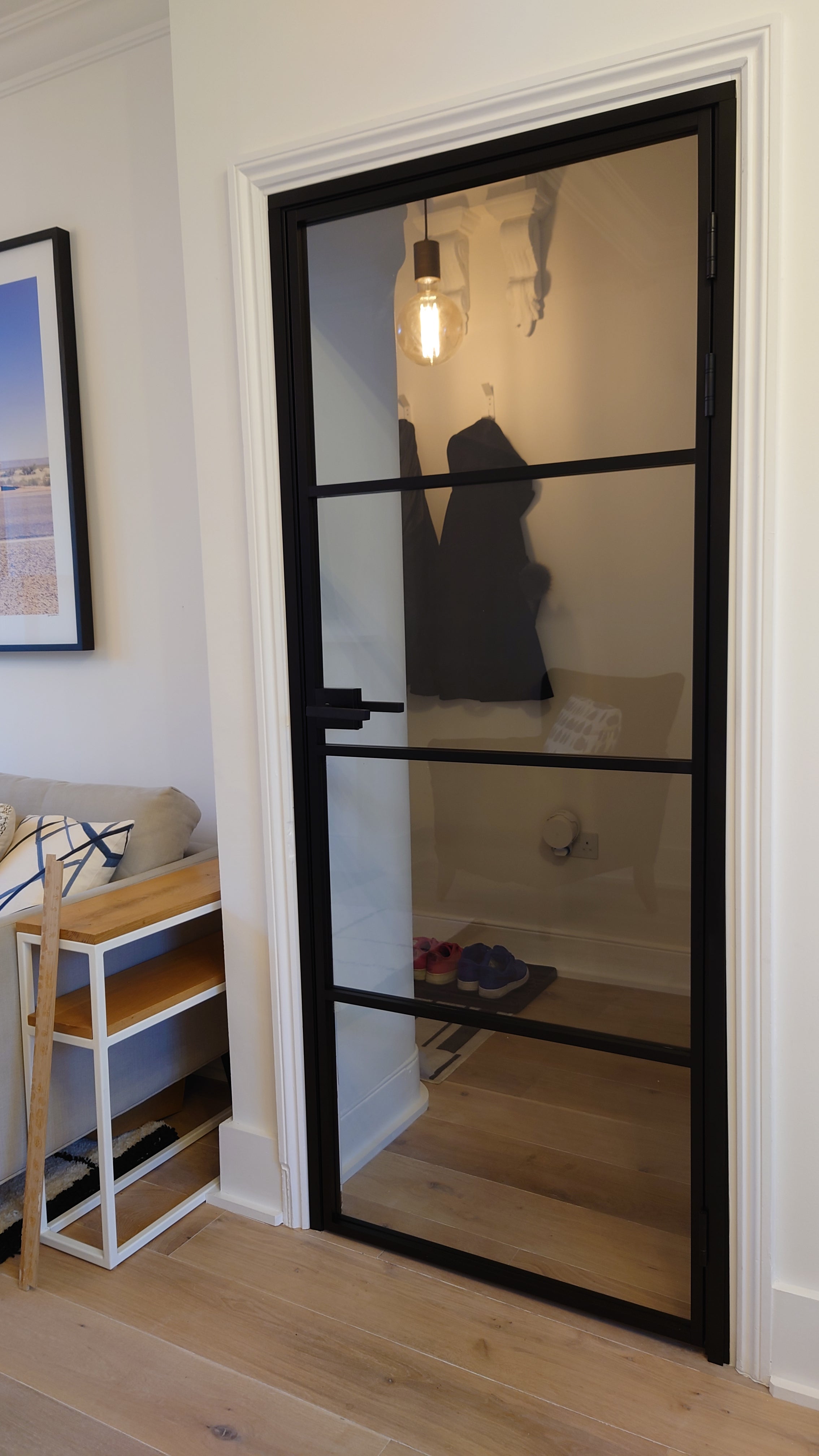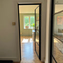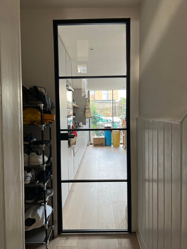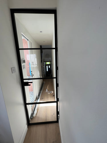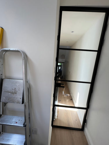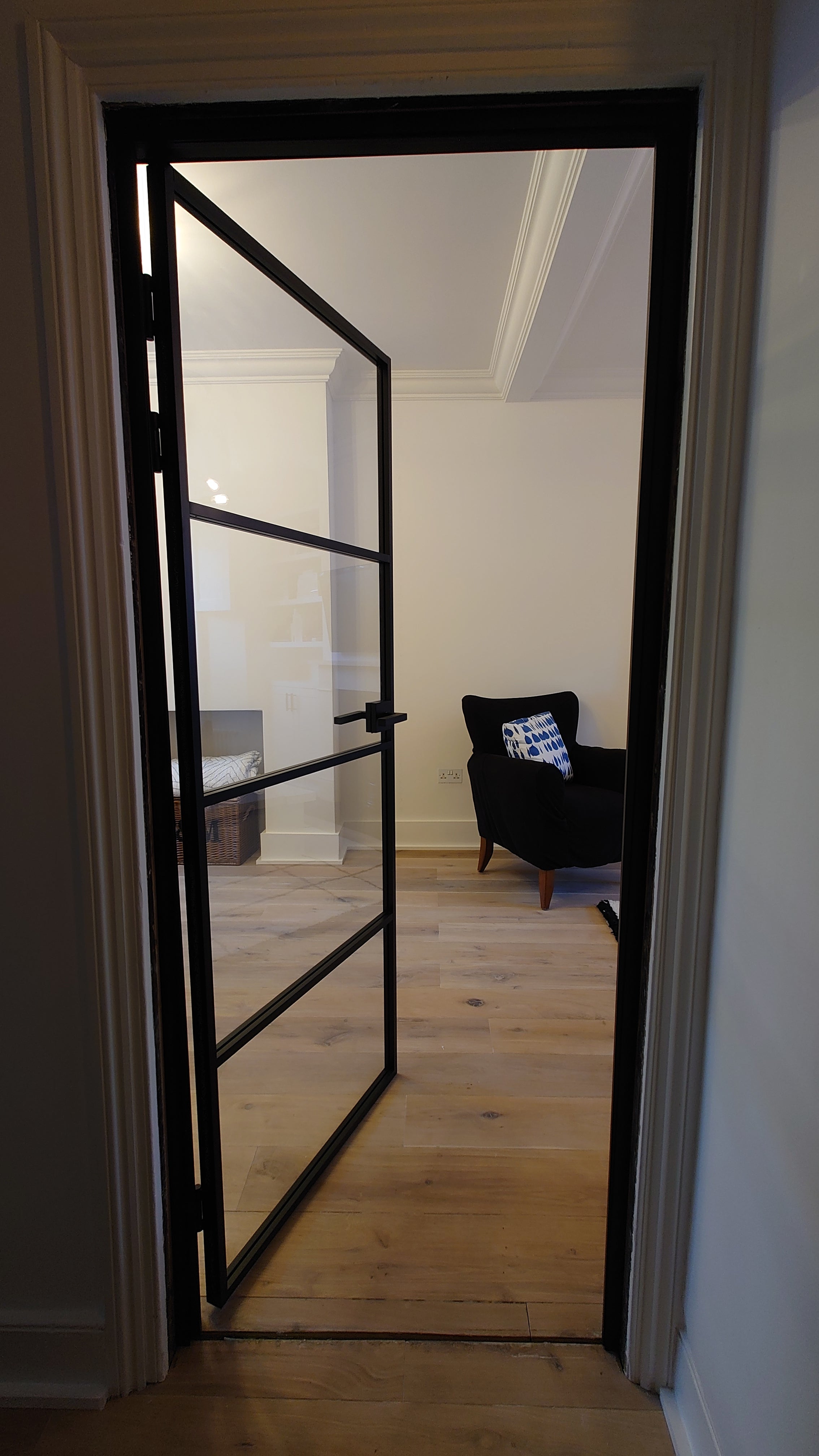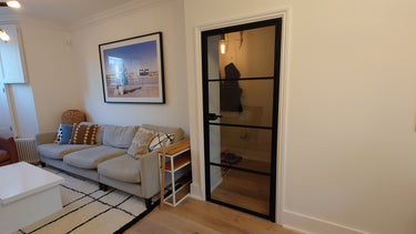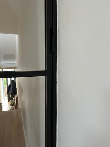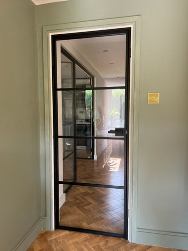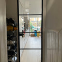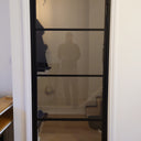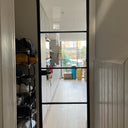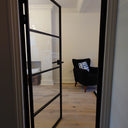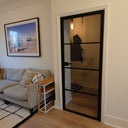 The slim, powder-coated frame provides a strong yet minimalist outline that complements both modern loft-style spaces and classic interiors with an urban twist. The door’s single hinged configuration allows for effortless movement, making it a practical choice that doesn’t compromise on aesthetics.