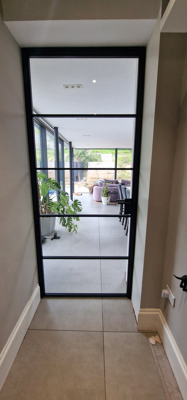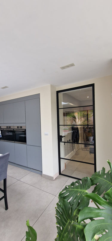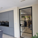 Inspired by contemporary Crittall-style design, the Aura Grid door combines industrial heritage with modern minimalism. The slim black frame outlines the glass with refined contrast, turning a functional entryway into an architectural feature that complements any interior scheme.
