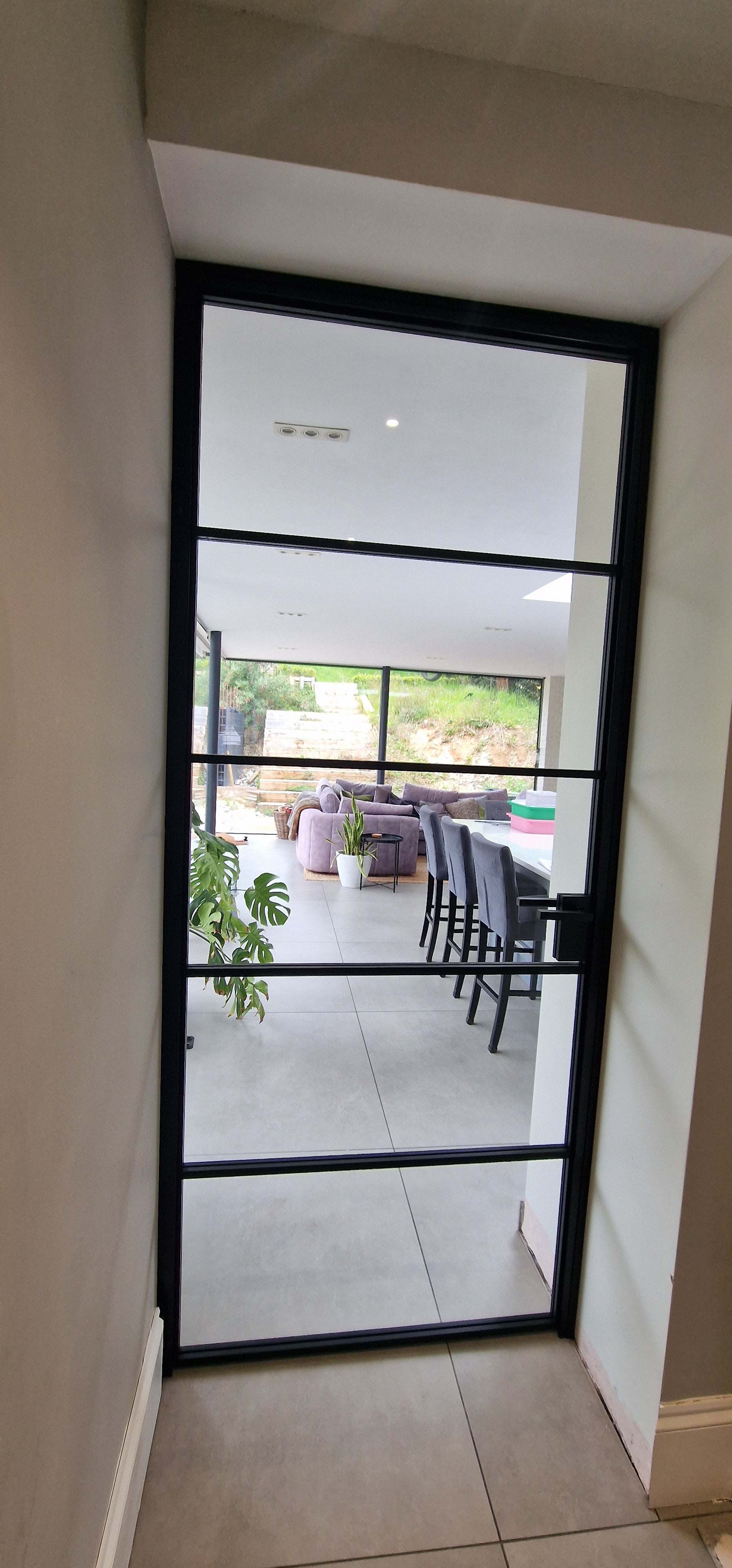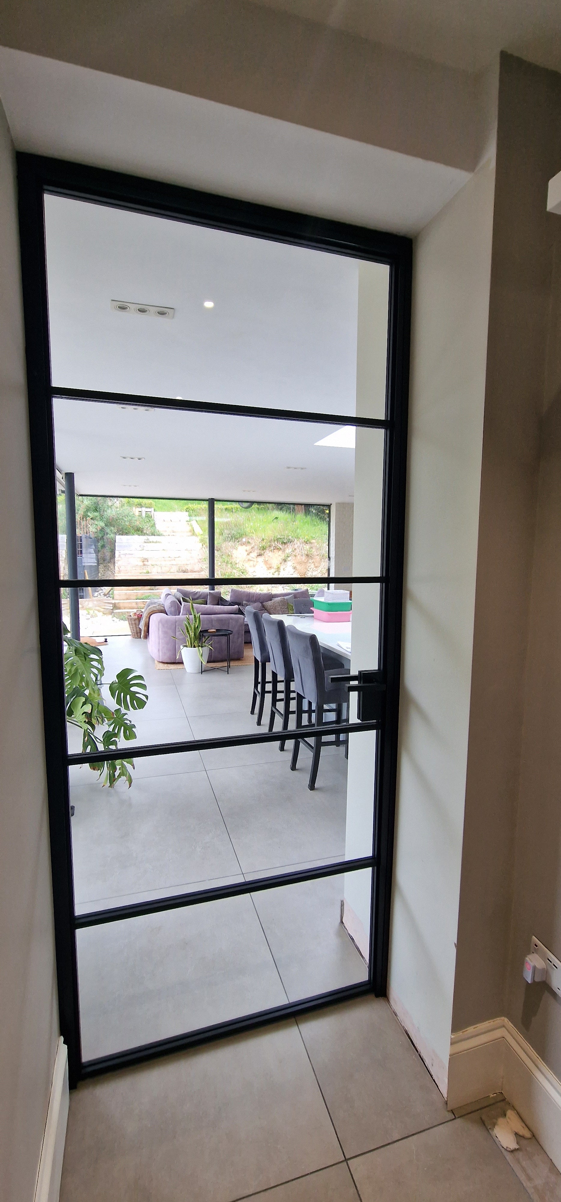 With our aluminium framing solutions, the design possibilities are endless. We offer and install metal framed doors in a variety of styles — hinged, sliding, pocket, bifold, and even wall partitions. These doors let natural light flow through, giving your space a bright and open feel. If you prefer more privacy, frosted glass is always an option instead of clear panels.