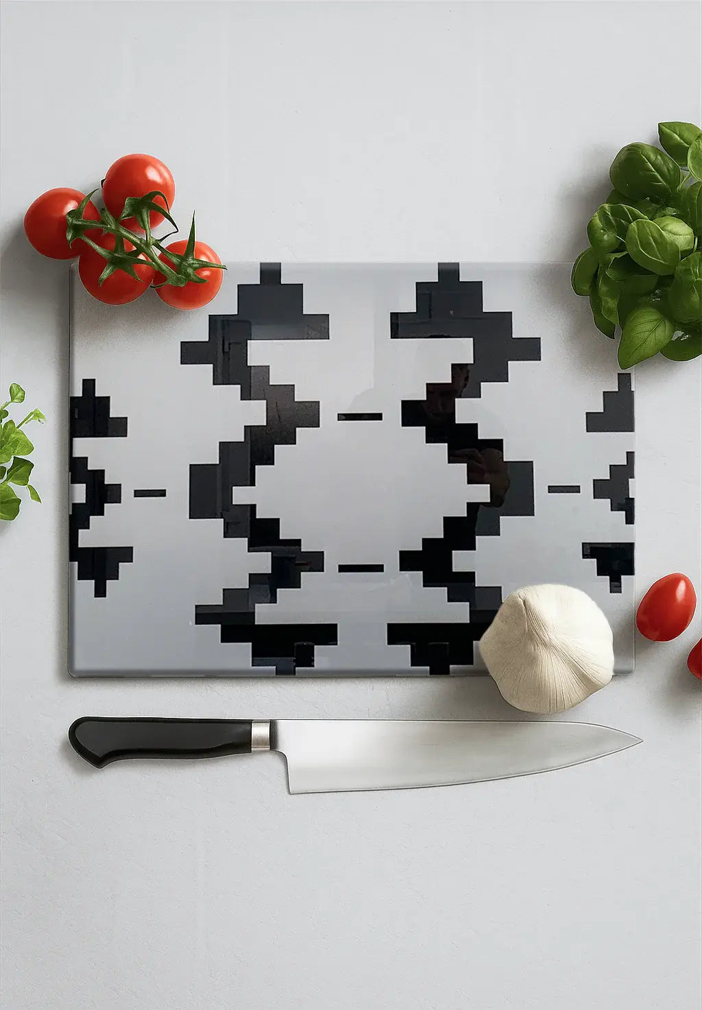 Black Pixel Stencil Glass Chopping Board and Placemat