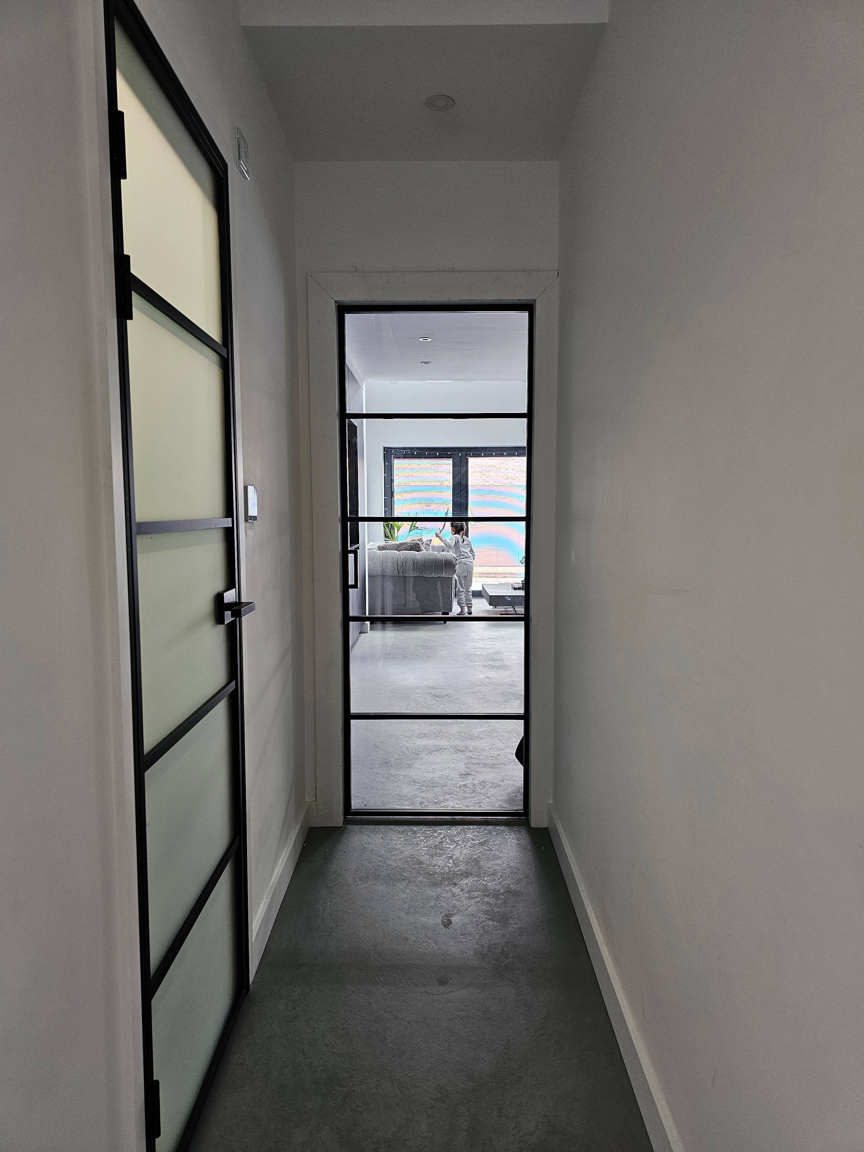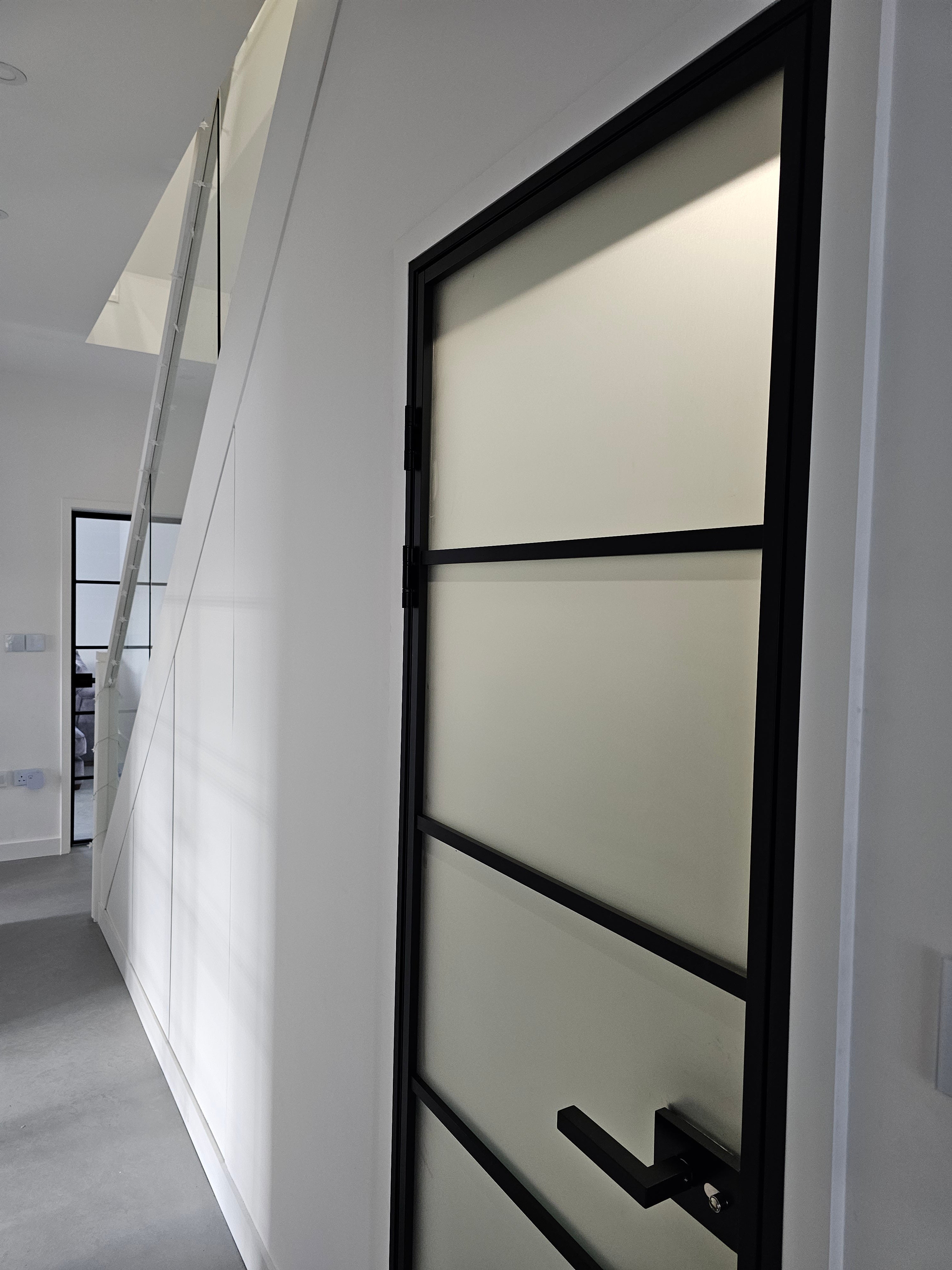 With our aluminium framing solutions, the design possibilities are endless. We offer and install metal framed doors in a variety of styles — hinged, sliding, pocket, bifold, and even wall partitions. These doors let natural light flow through, giving your space a bright and open feel. If you prefer more privacy, frosted glass is always an option instead of clear panels.