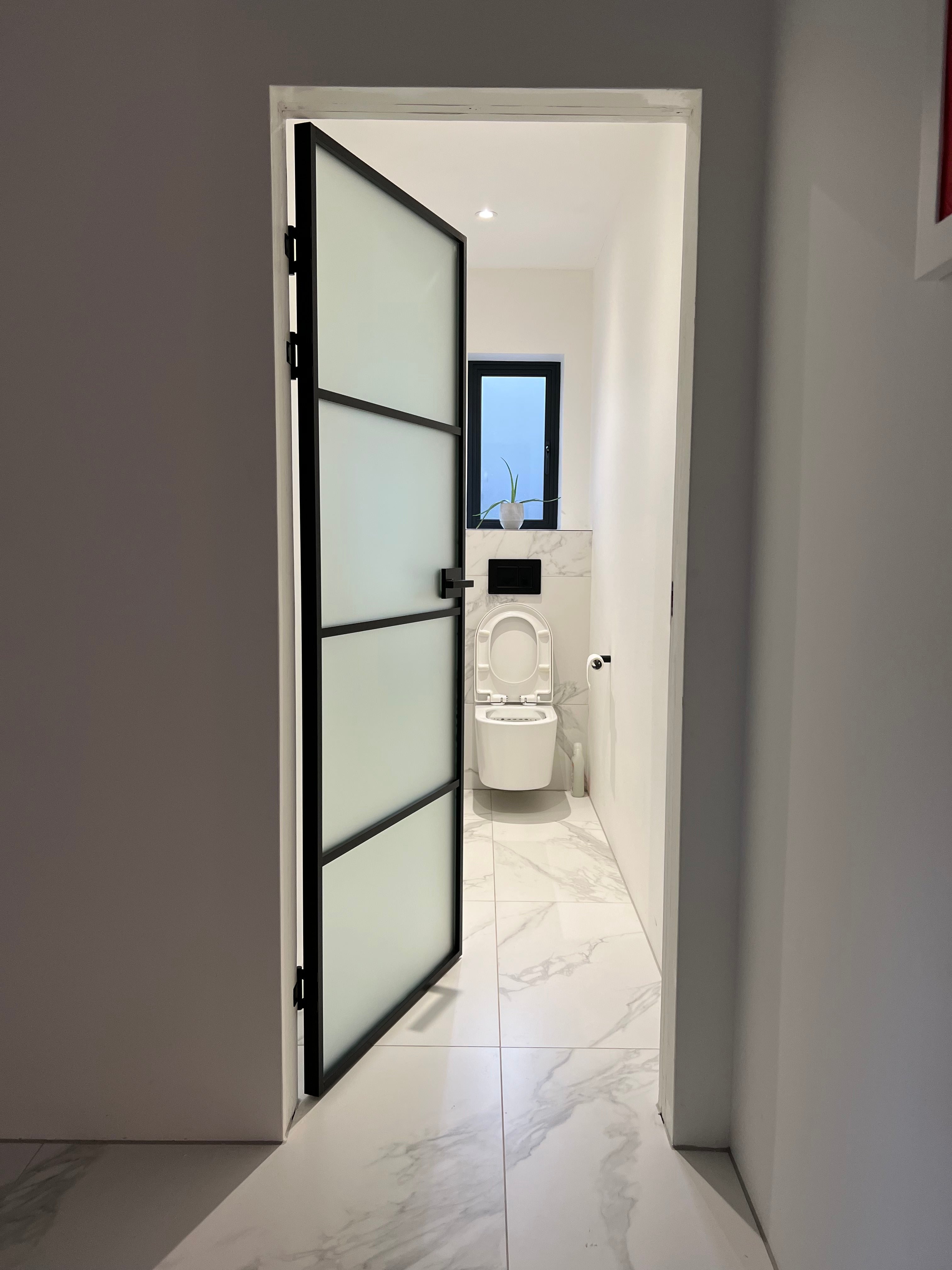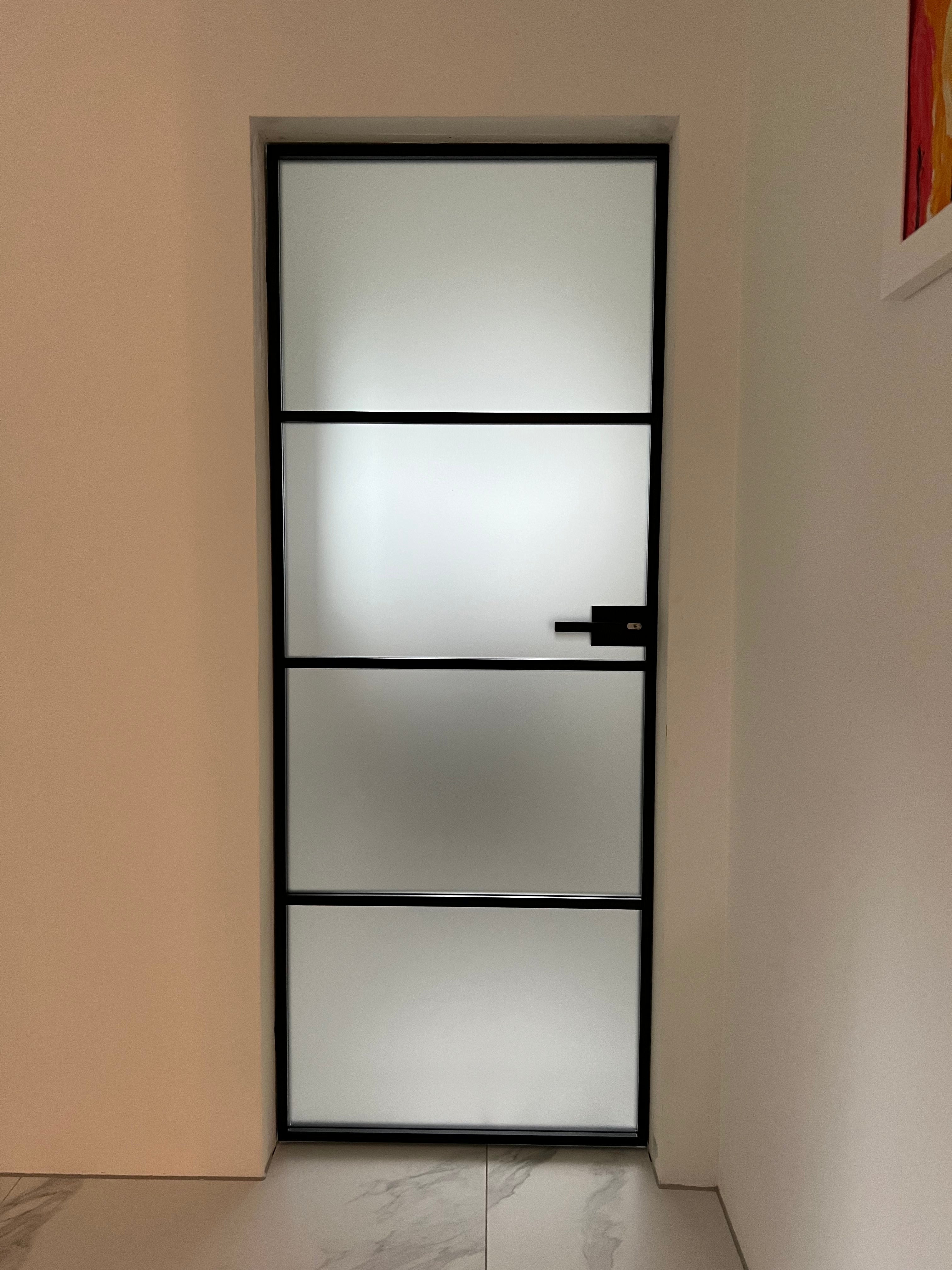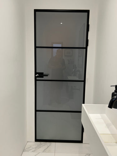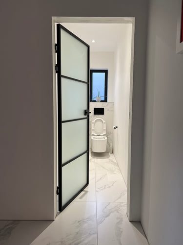 With its slim, powder-coated frame and seamless proportions, the Frost Linea complements both industrial-inspired and contemporary interiors. The frosted glass ensures privacy without compromising brightness, creating a balanced aesthetic that enhances any space it occupies.